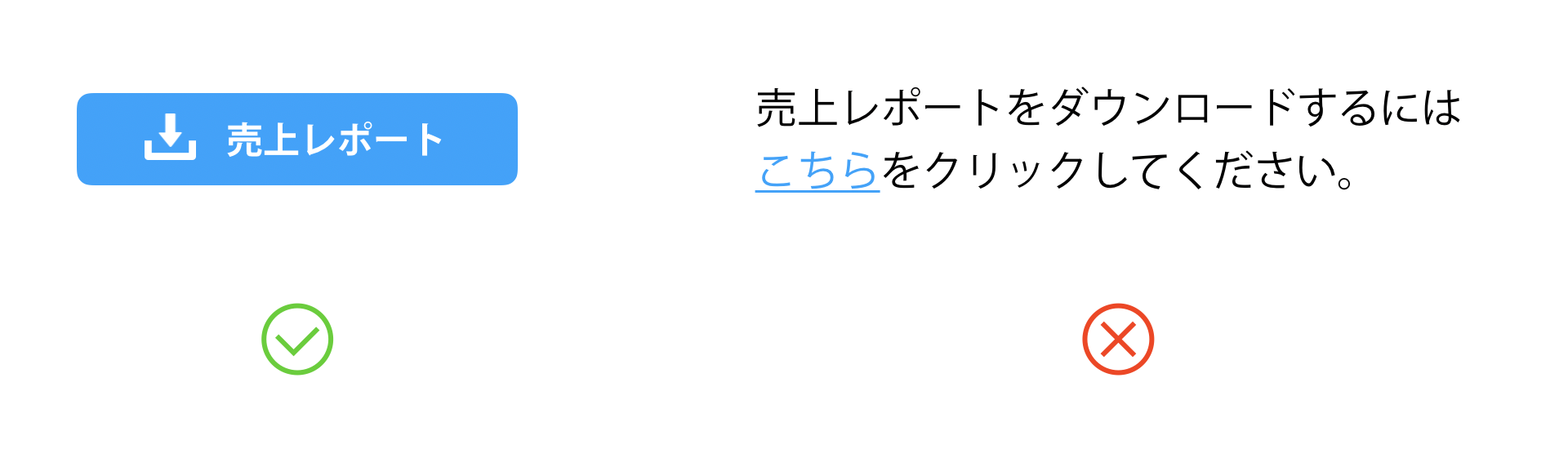 「売上レポート」と書かれたボタンの図と、「売上レポートをダウンロードするにはこちらをクリックしてください」と書かれたリンクの図